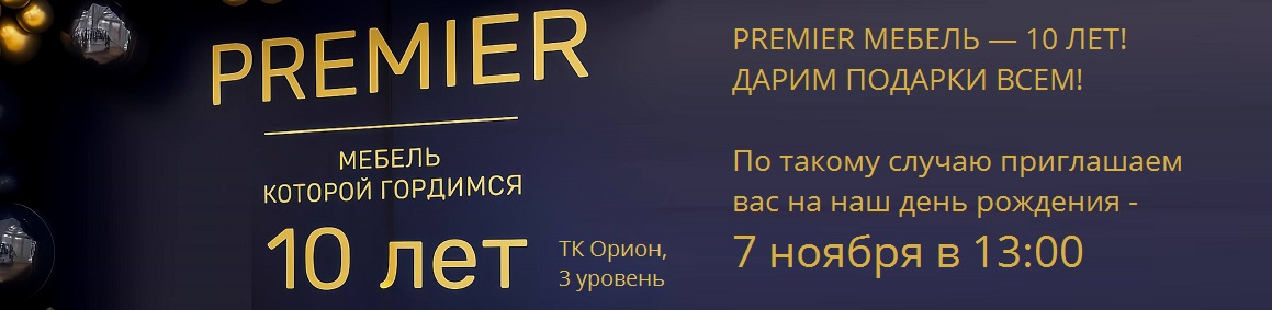 PREMIER МЕБЕЛЬ — 10 ЛЕТ! ДАРИМ ПОДАРКИ ВСЕМ!