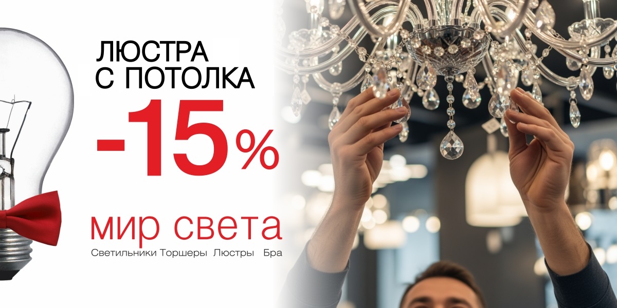 Сроки проведения акции: 20.02.26 - 09.03.2026. Акция действует на все люстры и потолочный светильники кроме люстры в распродаже и со стоп ценой.