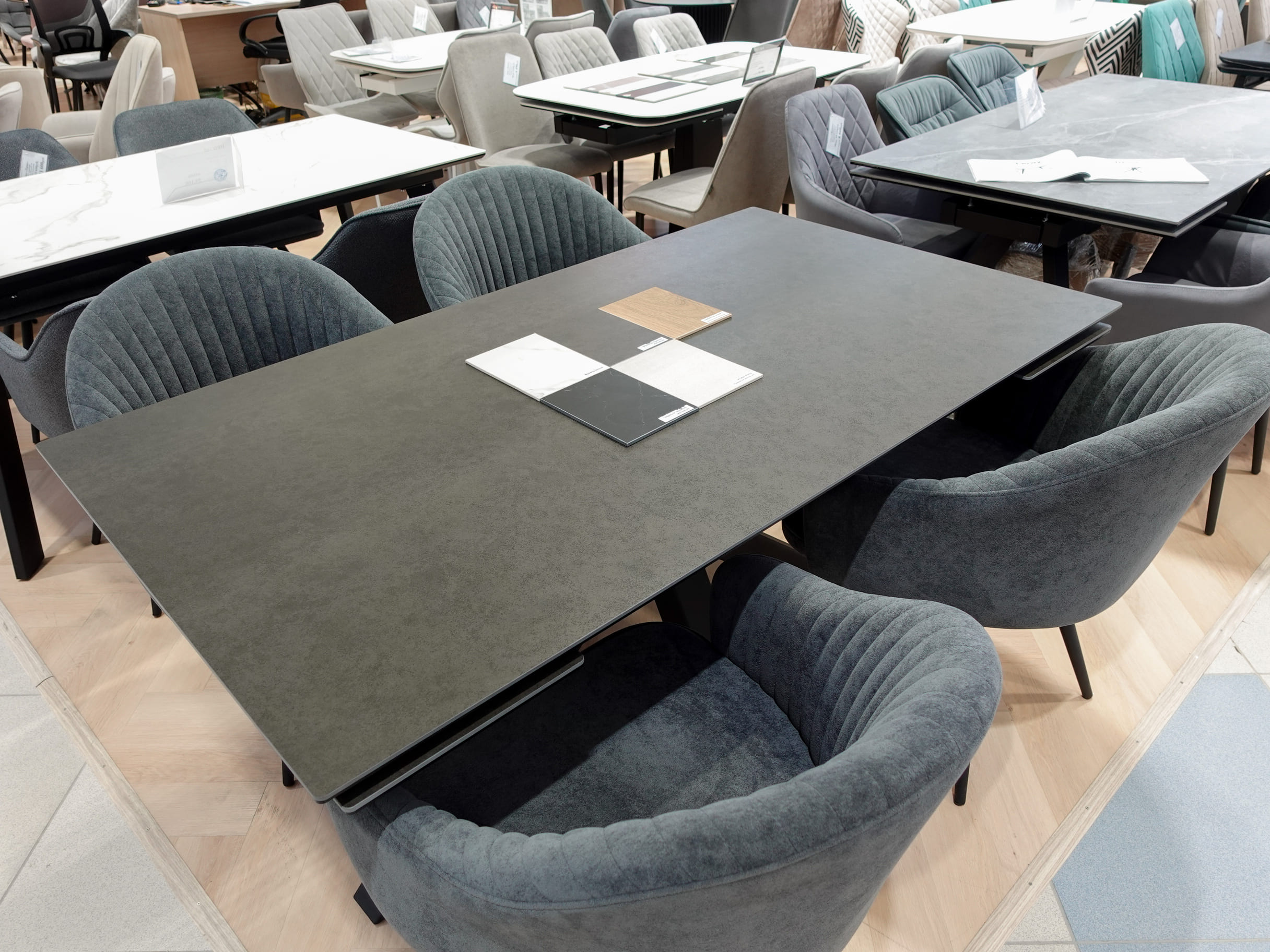 Салон AROOMA – это современные и классические обеденные группы! Производятся из высокотехнологичных материалов таких как керамогранит, стекло Opti White, металл и МДФ, а также традиционных – массив и шпон ценных пород дерева.
